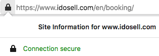 Guests browsing your IdoSell Booking website will see a padlock next to the domain address, which means that the content on the site is secured.
