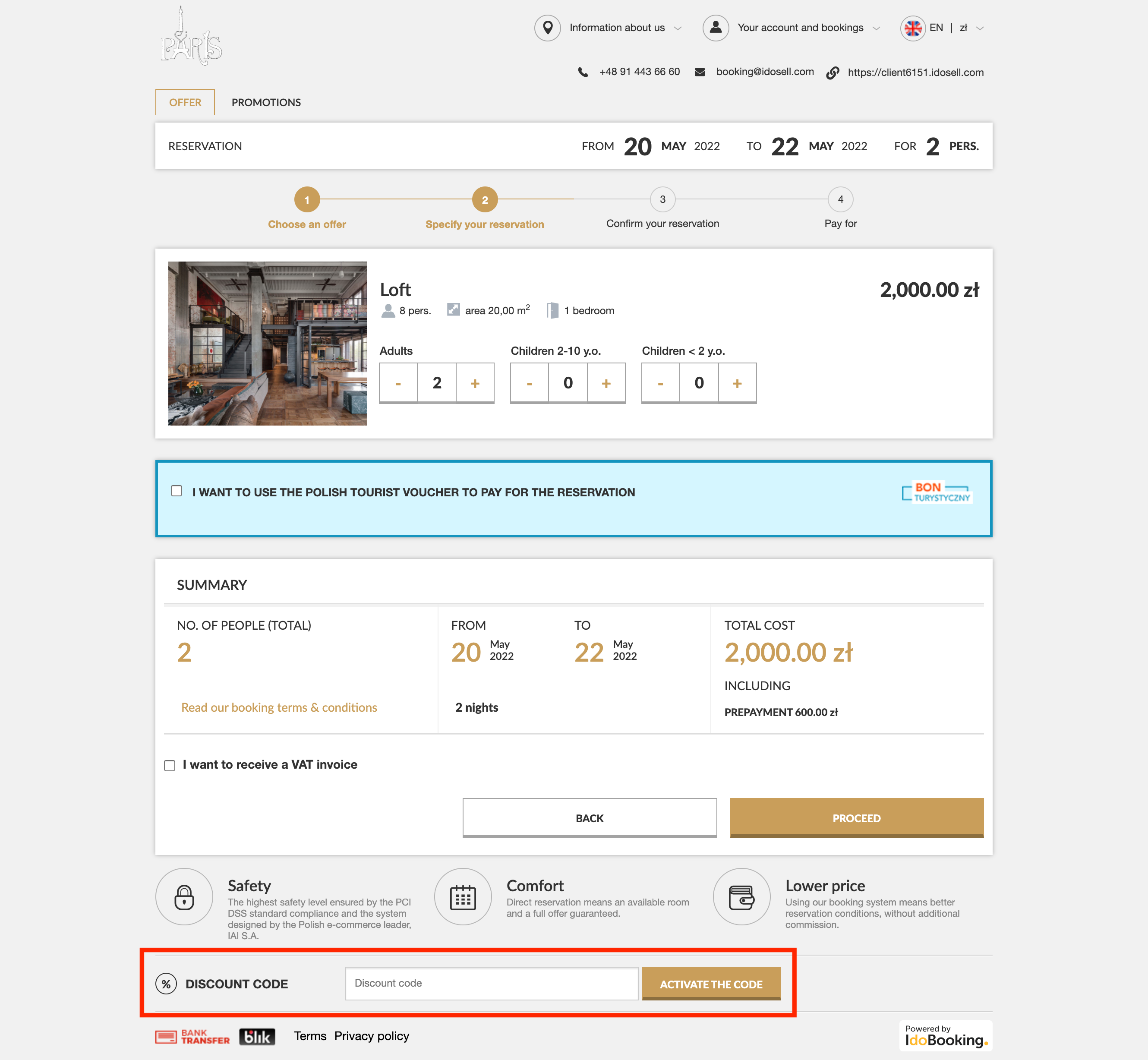 Ideas seem good, but you don't have the time for them? We have the special tools for that. The Offer option allows you to create an individual package for your guest. In addition, it will automatically send an e-mail with information and the option to pay and thus turn the offer into an actual booking. And that's not all, the offer can be time-blocking to block availability in the calendar for a given customer, or on the contrary, leaving a given date open for booking and thus forcing guests to make quick decisions. Handling regular customers or cooperating companies doesn't have to require any effort on your part either. You can assign a fixed percentage discount to a user account. Guests log into their account during booking and immediately have their individual rates displayed, without having to contact you each time.