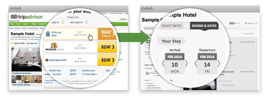 To launch TripConnect, you need to subscribe to TripAdvisor Business Listings. Once it's done, clients will be directed to IdoBooking Engine straight from your TripAdvisor page. Thanks to the integration, you show availability and rates on one of the biggest travel websites.